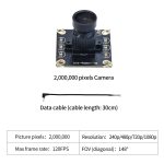Using 1/2.7inch OV2710 image sensor and F2.8MM lens, the diagonal FOV can up to 148°, maximum frame rate can reach 120fps. The image has large distortion, it is suitable for application scenarios that require high image clarity, such as advanced AI recognition for robots and high-speed tracking projects.