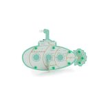 The first kit is shaped in the form of a Jules Verne submarine that can also be hung thanks to a little mounting hole in the top, or it can stand on its own. It has a unique light green print and features multiple green LEDs plus a warm candle flickering LED on top.