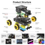 【Excellent hardware configuration】Equipped with Pi5 robot driver board,communicates with Pi5 via I2C, and supports Pi5 PD (5V/5A) power supply.The metal chassis is equipped with TT motors and Mecanum wheels to achieve 360°moving;it adopts a four-way patrol module,infrared patrol sensors with 4-way high-precision infrared probes;Ultrasonic waves to achieve distance measurement,obstacle avoidance,and following;with an OLED screen to view the main control temperature data in real time.