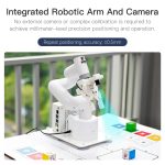 Equipped with a 0.3MP USB camera with a 110° field of view. Combining OpenCV image processing, machine vision and deep learning algorithms, JetCobot can realize functions such as color interaction, face tracking, tag recognition, model training and gesture interaction.