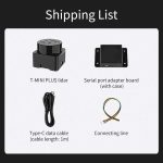 The size of this T-MINI-PLUS lidar is 3.39cm*3.86cm, can be easily installed on some compact devices. It adopts the TOF ranging principle, scanning radius up to 12M, can effectively perceive distant environmental information in 360°. Since it can resist 60kLux light, it is suitable for most indoor and outdoor environments. Based on the ROS robot, we provide ROS1, ROS2 driver code, debugging software and related usage tutorials for user reference. In addition to the separate lidar module, Yahboom also provide connecting cables and serial port adapter boards to facilitate user debugging.