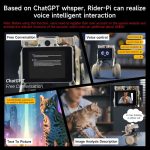Rider-Pi is a desktop two wheel-legged robot designed for developers, educators and robot enthusiasts. Built-in inertial measurement unit (IMU) and the carbon fiber connecting rod structure, which allow the robot to adjust the joint angle in real time to adapt to different terrain obstacles. Based on the Raspberry Pi CM4 core module, adopt Python programming, support a series of AI functions such as face recognition, color tracking/following, QR code motion control, object detection, license plate recognition, gesture following, etc. A 2.0-inch IPS screen on the front, can display video images and 35 dynamic expressions in real time. In addition, Rider-Pi also supports ChatGPT (extra charge), which can realize voice Q&A, voice control, text-to-picture, and image analysis description functions.